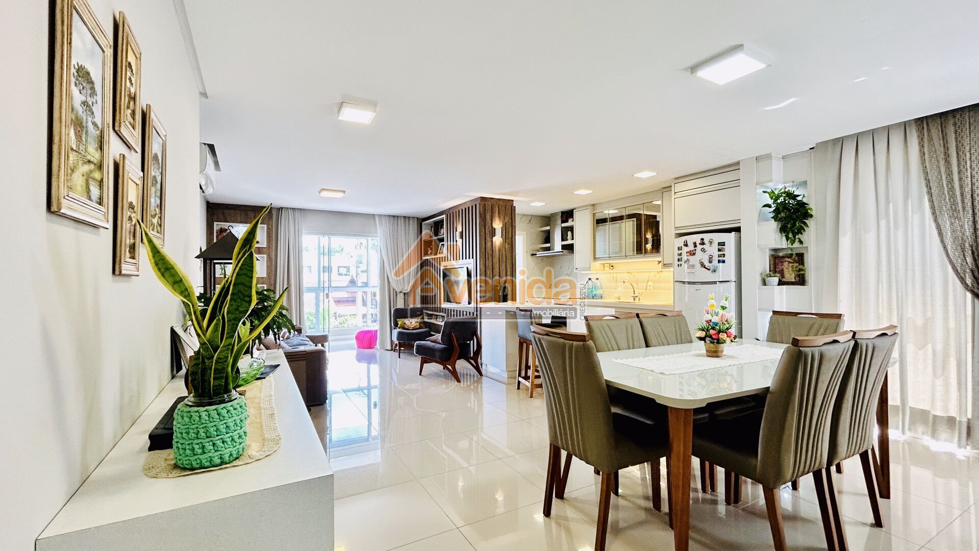 Na área íntima, o imóvel possui 3 dormitórios, sendo 1 suíte com closet, oferecendo conforto e privacidade. Os ambientes contam com móveis sob medida e acabamentos de qualidade, que trazem praticidade e sofisticação ao dia a dia.